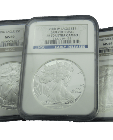 Browse our collection of silver dollars and bars for investment or collection.